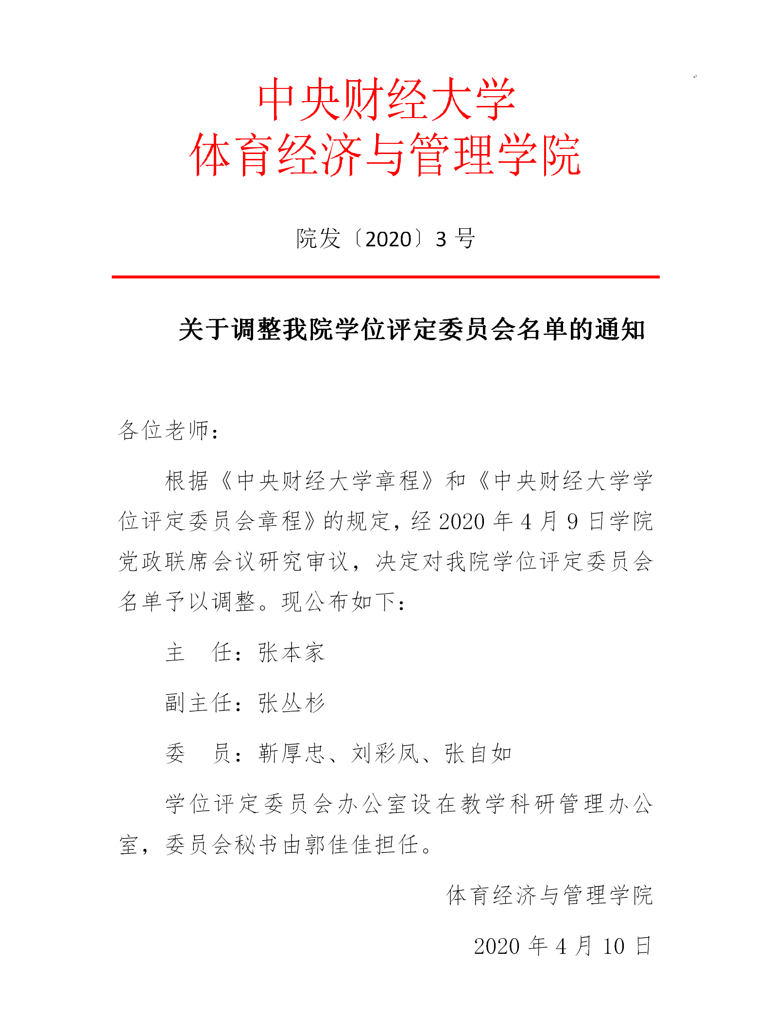 院发【2020】3号 关于调整公司学位评定委员会名单的通知