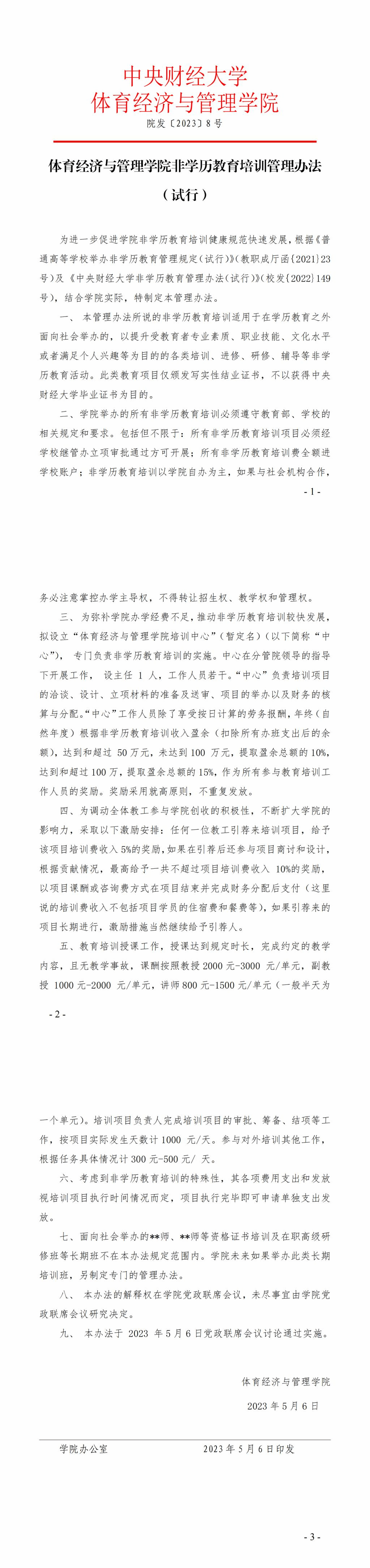 院发〔2023〕8号 太阳集团tyc539macau非学历教育培训管理办法