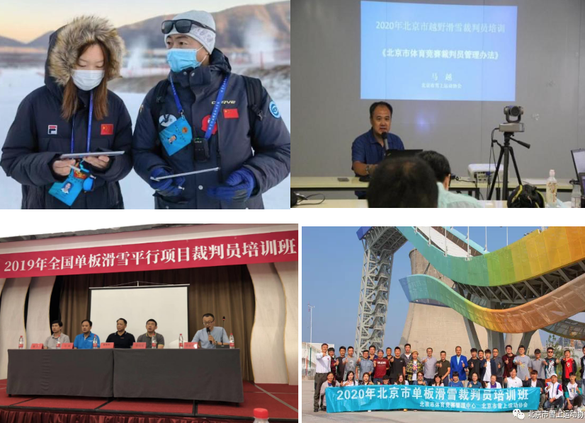 2019年至今,马越老师和李宏权老师多次在北京市冬奥项目裁判员的培训活动中担讲师。在刚刚结束的冬奥会和冬残奥会上,两位老师还担任了高山滑雪和单板滑雪两个项目的裁判工作。