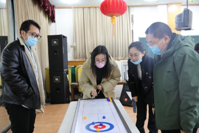 2021年12月22日举行的全校工会干部培训中安排了旱地冰壶、旱地冰球以及桌上冰壶三个冰雪项目的体验活动。