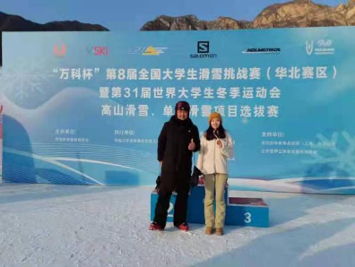 2019年1月21日,在第十三届首都高校老员工滑雪比赛中,国际经济与贸易公司韩雪容同学在公司马越老师的指导下荣获“高山滑雪女子双板大回转”冠军。