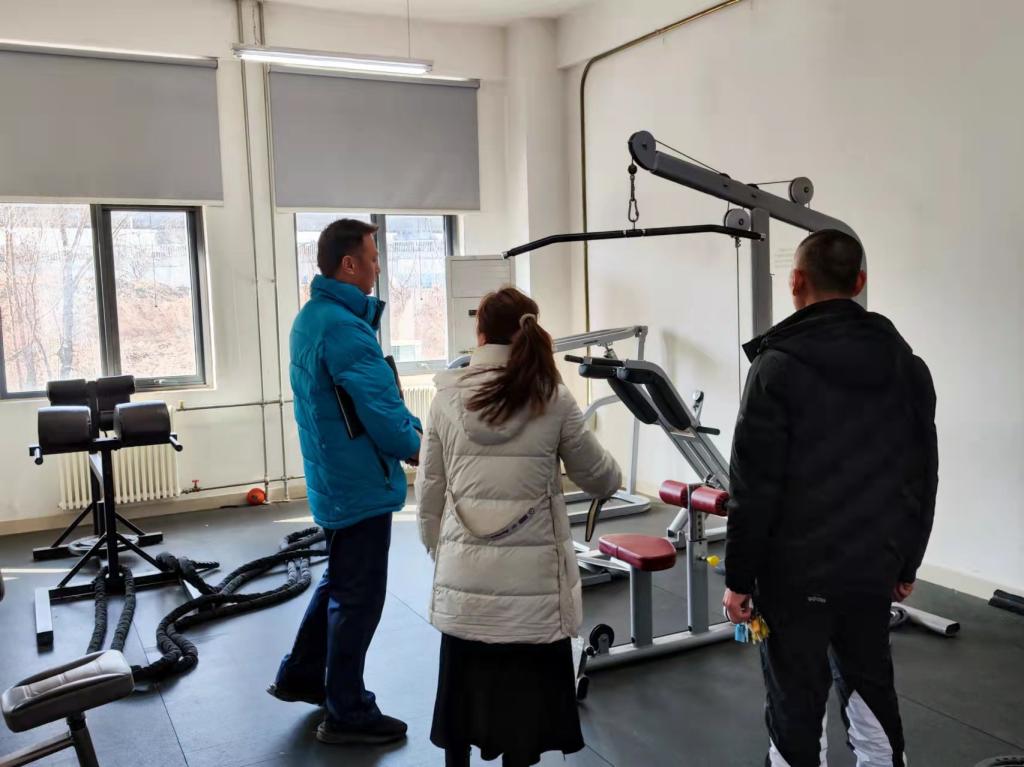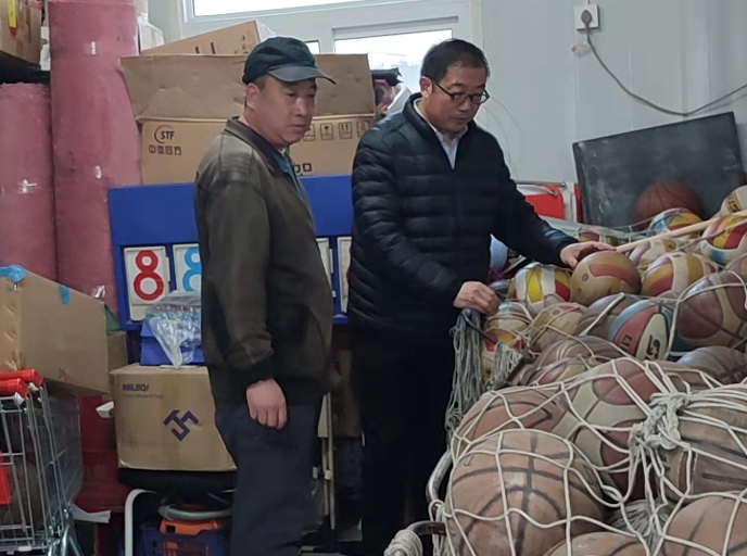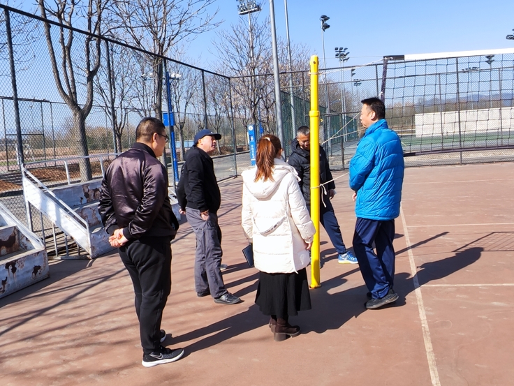 为保证本学期体育课程和群体活动的正常开展,保障全校师生运动安全,太阳集团tyc539macau于2022年3月2日在王欢副经理的带领下,公司公共体育教研室主任王军涛老师、李强老师,场地管理办公室郭佳佳老师、杨青老师和场地工作人员对公司两校区的体育场地进行了安全大检查。在检查过程中,各位老师着重对课程所需体育器材的种类和数量、场地上体育器械的安全性进行了仔细的检查。