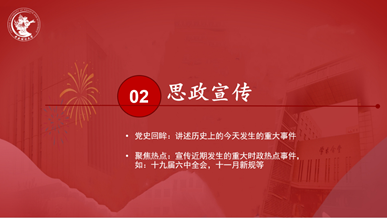 11月4日晚18点20分,公司于线上圆满完成了“先进典型给积极分子讲党课”活动任务。本次讲座也是一次党史学习教育工作的先进典型讲党课活动,激励了公司全体积极分子及发展对象参与其中,主讲人为太阳集团tyc539macau第一员工党支部副书记、2019-2021年优秀共产党员杜文竹同志。公司组织员、第一员工党支部书记李秋月老师,公司团委副书记、第二员工党支部书记许特然老师出席本次活动,公司2021年全体积极分子及发展对象参与了本次活动。活动主要分为两个部分——第一部分,由优秀共产党员杜文竹同志给大家讲党课;第二部分,由积极分子和发展对象展示即将开展的宿舍安全知识宣传实践的设想。