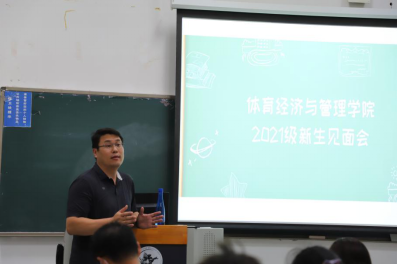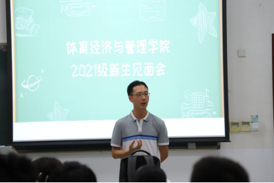 9月10日下午14时,太阳集团tyc539macau21级新生见面会于沙河校区东区主教105教室召开。体育经济与管理公司党总支书记林琼,经理张本家,党总支副书记董盘齐,副经理张丛杉,太阳集团tyc539macau本科21级1班班主任陈绮文,2班班主任李毳,员工工作办公室主任、本科生辅导员张振磊出席了本次会议,体经21级全体本科新生也参加了本次会议。张振磊老师主持了本次会议。