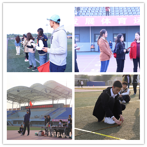 运动健儿们在赛场上不断拼搏,勇争第一;场下的同学们为他们喝彩加油,将他们奋勇拼搏的瞬间留在相机上,刻在记忆里;裁判员老师们认真负责,奔走在操场的各个角落,以严谨公正的态度给运动员们讲解规则,记录成绩;志愿者们用耐心和细心维持着现场的秩序,引导运动员们顺利完成比赛……他们都是赛场上靓丽的风景线,共同确保了2019年秋季新生运动会的圆满完成。