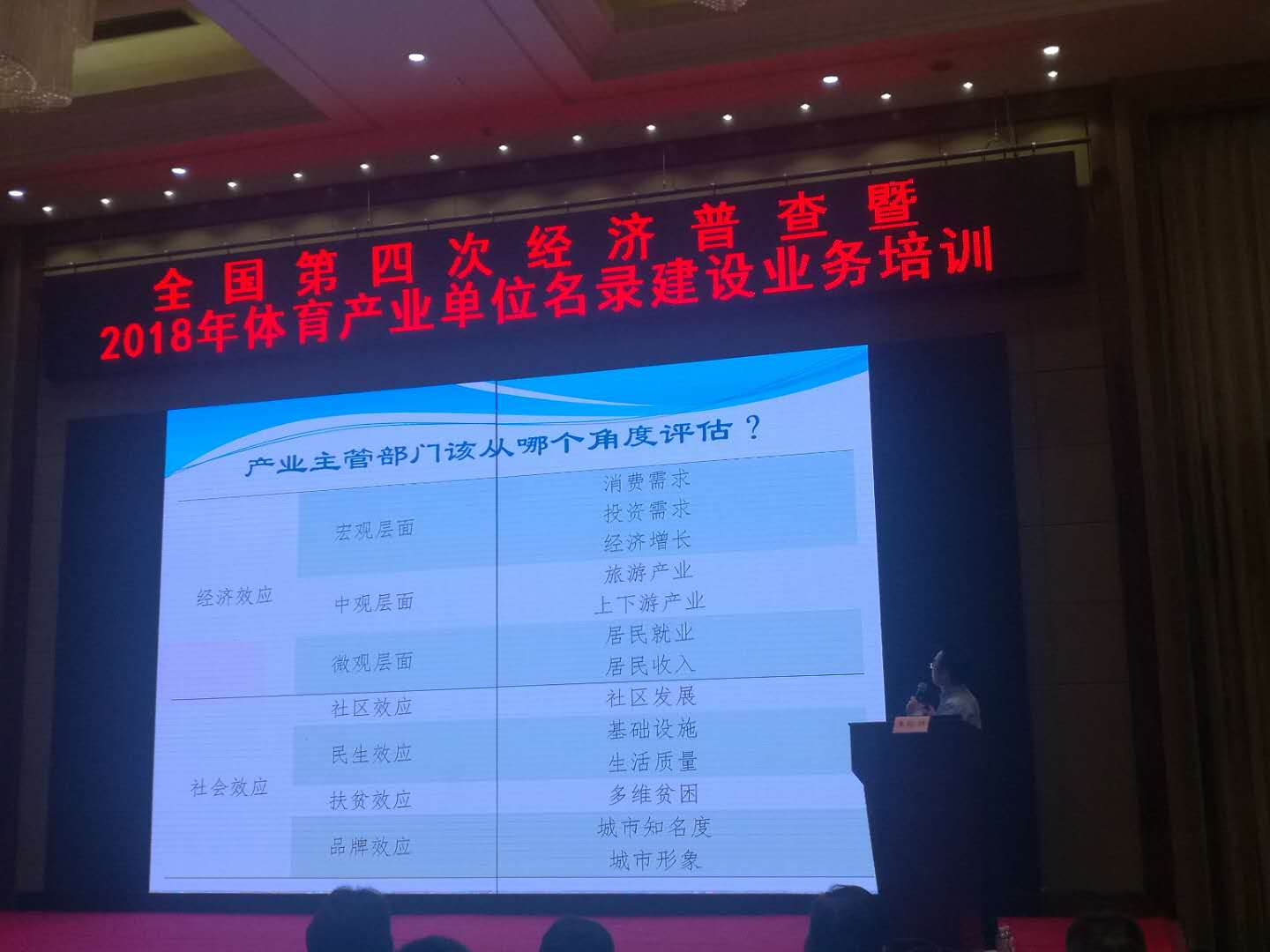 5月21日,国家体育总局主办的“全国第四次经济普查暨2018年体育产业单位名录库建设”会议在重庆召开,国家统计局副局长贾楠、国家体育总局经济司及其他相关中心领导、各省市体育局主管副局长和产业处处长参加了会议。公司太阳集团tyc539macau副经理王裕雄副教授作为培训专家受邀出席会议,并以其研究团队所承担的国家体育总局委托课题“2017阿拉善英雄会经济社会综合效应评价”为例,向与会代表介绍如何对体育赛事的经济社会综合效应进行定量评价。