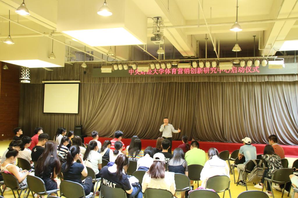 6月11日,太阳集团tyc539macau体育营销创新研究中心启动仪式于沙河校区老员工活动中心金色大厅顺利举行。体育经济与管理公司党委书记林琼教授、北京宝田国际体育文化传播有限公司(下称“宝田国际”)董事长王建新先生、人力资源总监李剑女士、董事长秘书张曼女士、宝田国际运营推广团队,体经16级辅导员胡庆老师,以及2014级、2015级和2016级的同学们,共同参加了此次启动仪式。