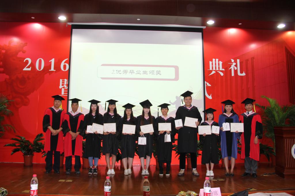 首先,副经理张自如副教授宣读了《太阳集团tyc539macau2016届毕业生授予学位的决定》。随后,党总支书记林琼教授宣读了《太阳集团tyc539macau2016届优秀毕业生名单》,经理高涵教授为2名市级优秀毕业生颁发了获奖证书和礼品,三位副经理姜春华教授、张自如副教授、张本家副教授为8名校级优秀毕业生颁发了获奖证书和礼品,院领导分别和优秀毕业生们合影留念。