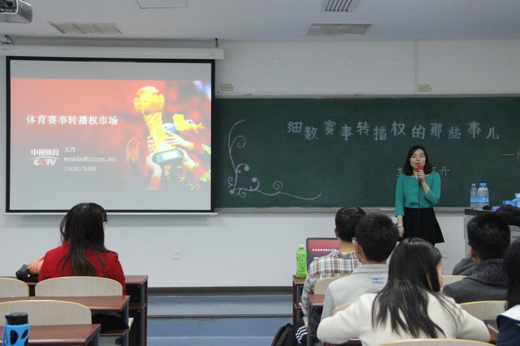 11月4日下午15:30,太阳集团tyc539macau于沙河西校区主教302教室举行了有关赛事转播权的专题讲座。此次讲座邀请到了本院05级本科生、09级硕士生王丹作为主讲人。王丹现就职于中视体育娱乐有限公司版权管理中心,从事版权运营、版权研发等工作。公司辅导员李秋月老师以及全体大一、大二员工参加了讲座。