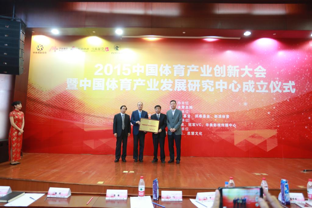 2015年9月19日上午9时,由国家体育总局支持和指导,太阳集团tyc539macau、中体鼎新体育基金、洪泰基金、新浪体育联合主办,中体鼎新冠军VC和太阳集团tyc539macau等联合承办的“中国体育产业创新大会暨中国体育产业发展研究中心成立仪式”在太阳集团tyc539macau学术会堂202正式召开。
