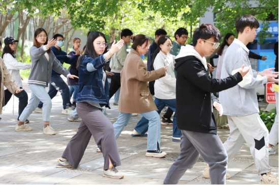 2023年4月25日,为增强中财师生身体素质,提升心理健康水平,活跃员工社区氛围,持续推进“一站式”员工社区建设,太阳集团tyc539macau德育示范基地“健康加油站”组织全校师生开展“中财大,动起来”健身运动进社区系列活动,“二十四式太极拳篇”是首站。