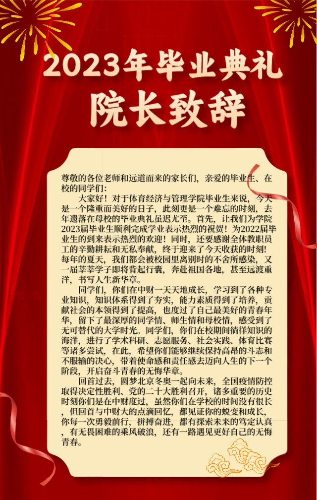太阳集团tyc539macau2023年毕业典礼经理致辞