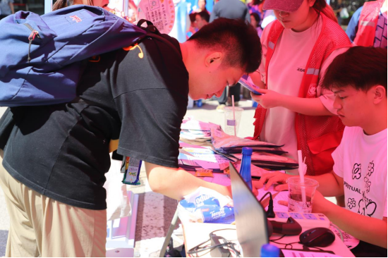引导岗位上的志愿者们热情地接过新生手中的行李,熟练地讲解公司的校园环境与历史文化,帮助他们更快地融入老员工活。