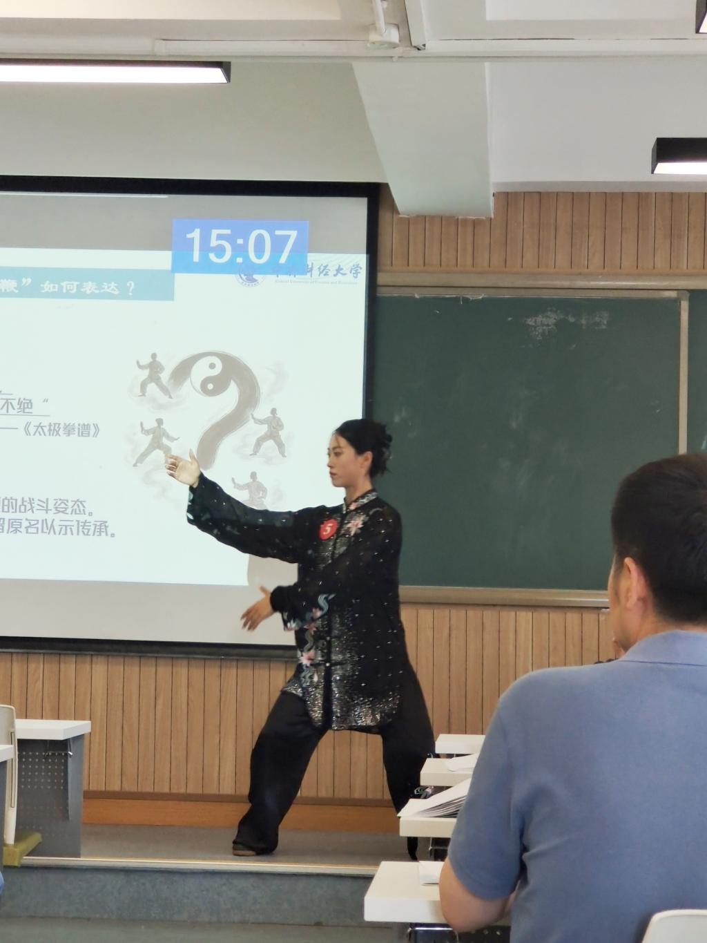 朱淼老师在备赛过程中,深入研究教学内容,精心设计教学方案。在比赛中朱淼老师讲解清晰透彻,示范优美大方,技能展示精彩动人,充分利用太极拳拳理与文化育人立德,展示了其精湛的武术技艺和优秀的教学能力。