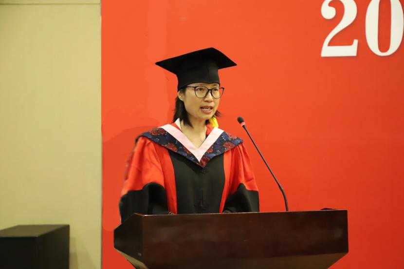 张本家经理在致辞中寄语毕业生:"希望你们传承‘体经人’的专业精神,在各自领域实现人生价值。"教师代表李毳老师结合体育经济行业发展趋势,强调了终身学习的重要性。毕业生代表黄敏(硕士)、孙艺航(本科)及家长代表孙玉柱分别上台发言。
