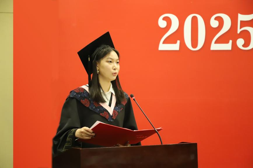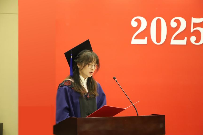 典礼在庄严的国歌声中拉开序幕。副经理张丛杉首先宣读了《2025届毕业生毕业及学位授予决定》,对达到毕业要求的本科生、研究生授予相应学位。