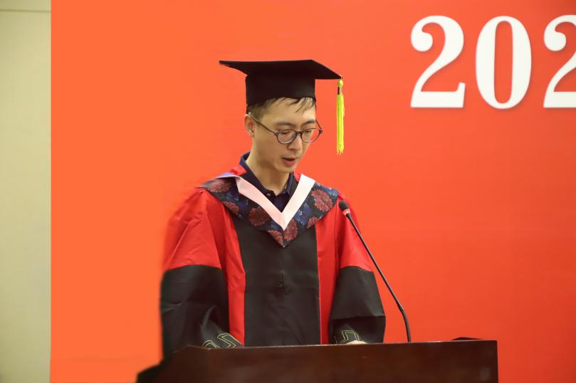 本科、研究生毕业生代表分别通过诗朗诵节目向教师致谢。典礼最后,全体人员在图书馆前拍摄毕业合影。