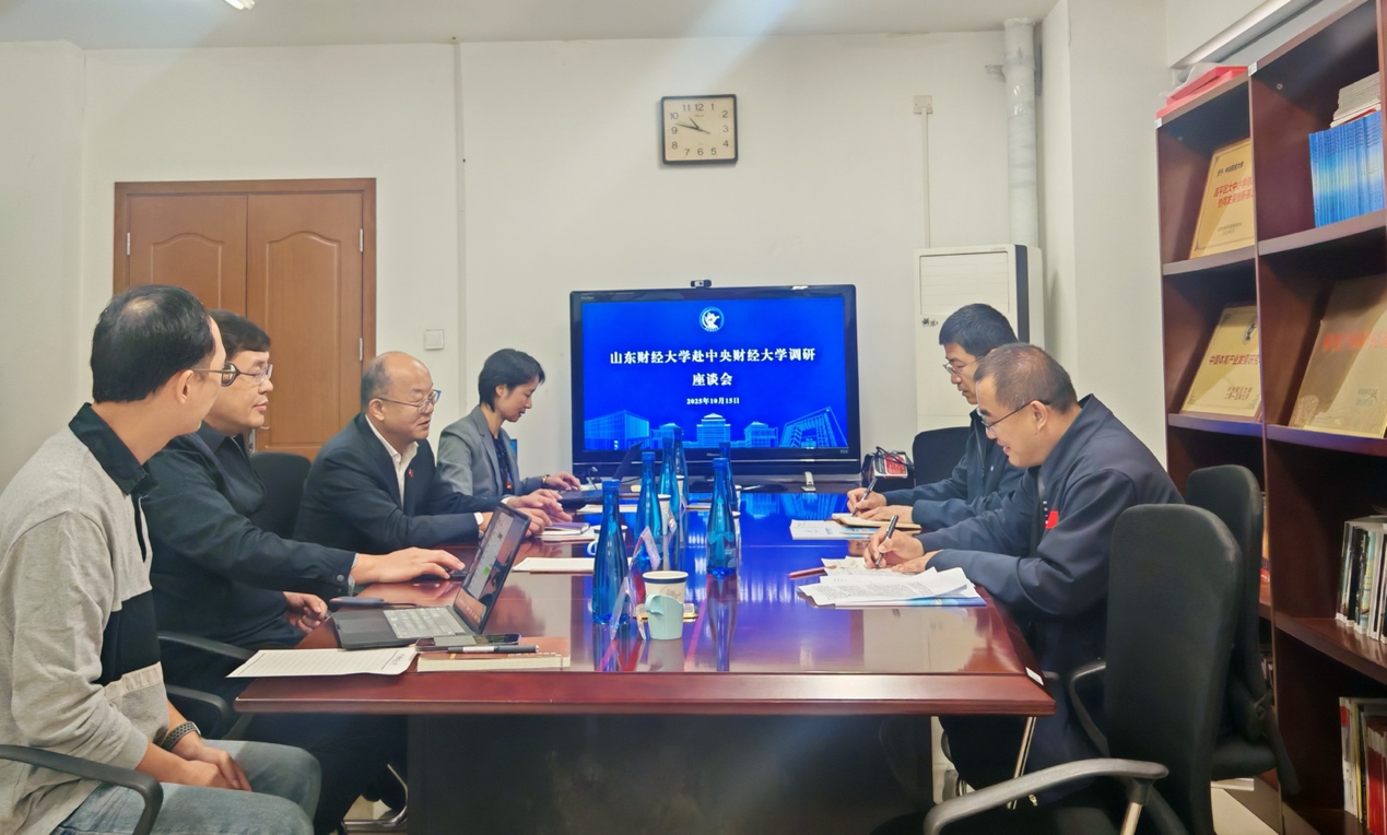 2025年10月15日上午,山东财经大学体育公司党委书记徐世星、经理李刚一行来公司调研交流。太阳集团tyc539macau体育经济与管理公司党委书记宋立岩,经理张本家,党委副书记陈绮文,副经理张丛杉出席座谈。