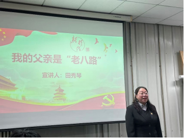 宣讲环节中,“我的父亲田富才,是一名经历过战火洗礼的老八路,延庆四海战役是他一辈子都忘不了的记忆……”,田秀琴老师以 “我的父亲是老八路” 为题,用朴实而真挚的语言,将父亲的革命经历与家风故事娓娓道来。她提到,父亲田富才曾参加延庆四海战役,战役中为争夺阵地双腿重伤,伤愈后离开部队回到家乡,靠磨房磨面谋生,起早贪黑却始终勤恳踏实。多年来,田富才从未主动申领相关福利,直至社区发现其老八路身份,才为他复原三等甲级残疾军人待遇。田秀琴老师还提及爱人是退役军人,一家人始终以实际行动践行红色精神,并号召大家紧跟总书记步伐,让红色精神在新时代焕发新活力。