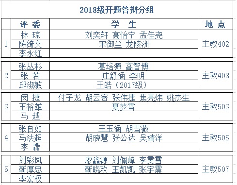 2018级本科生开题答辩分组