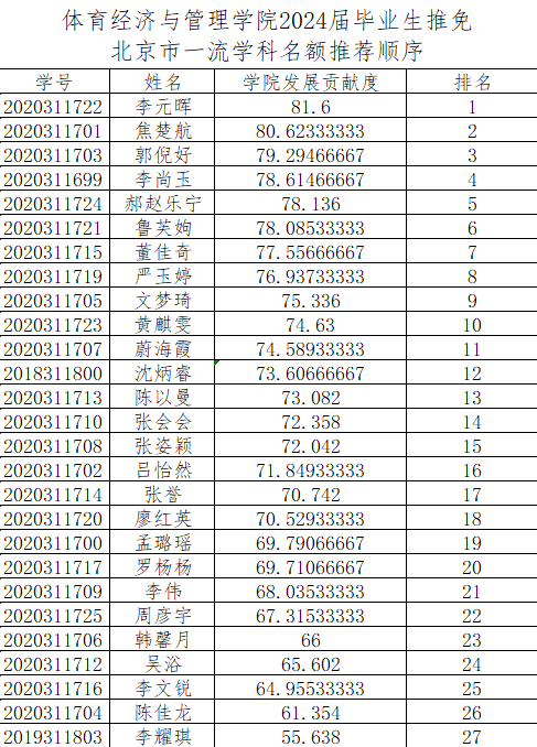 附件3:太阳集团tyc539macau2024届毕业生推免北京市一流学科名额推荐顺序