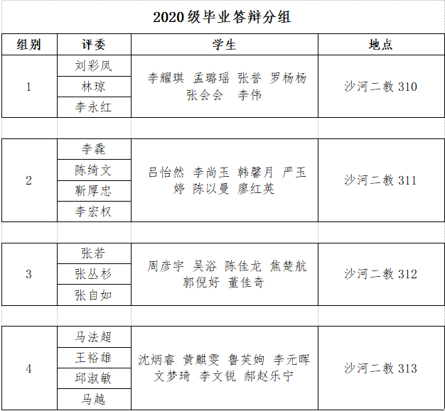请同学们提前十分钟到达所在答辩教室准备答辩。如若有同学没有通过毕业论文答辩,请这部分同学及时与论文指导教师沟通,根据答辩组老师意见修改论文后,参加二次论文答辩。
