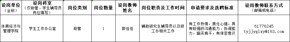 根据《太阳集团tyc539macau研究生“三助一辅”工作管理办法》和《关于开展2024-2025学年第二学期“三助一辅”岗位设聘工作的通知》(研字〔2025〕13 号)等相关文件要求,本学期公司设1个助管岗位,设岗信息要求见下表: