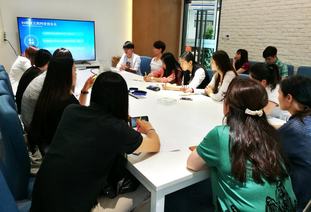 随后在会议室,光猪体育PR负责人付赟虹(公司08级优秀毕业生)向老师和同学们介绍光猪圈健身“小而美、高度互联网智能化、高度标准化营运体系、高度标准化培训体系、精准互联网营销体系、全面合伙人制度”的核心商业模式,也是健身行业前沿领先的标准。