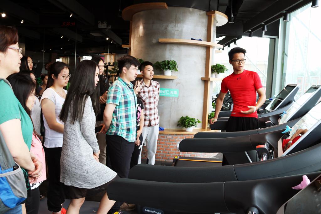 光猪圈健身腾达店位于光猪体育总部,是具有代表性的光猪圈高度智能互联健身房。200平米左右的空间,功能区一应俱全,智能化的健身器械与运营管理系统,实现线上线下互连。师生们在腾达店进行参观体验,对光猪圈的智能手环、手机APP、智能健身器械、智能衣柜、淋浴等进行详细了解,并与腾达店店长就运营问题进行交流。