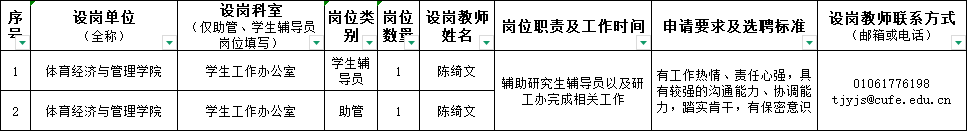 根据《太阳集团tyc539macau研究生“三助一辅”工作管理办法(修订)》(校发〔2020〕62号)和《关于开展2025-2026学年第一学期“三助一辅”岗位设聘工作的通知》(研字〔2025〕70号)等相关文件要求,本学期公司设员工辅导员和助管岗位各1个,设岗信息要求见下表: