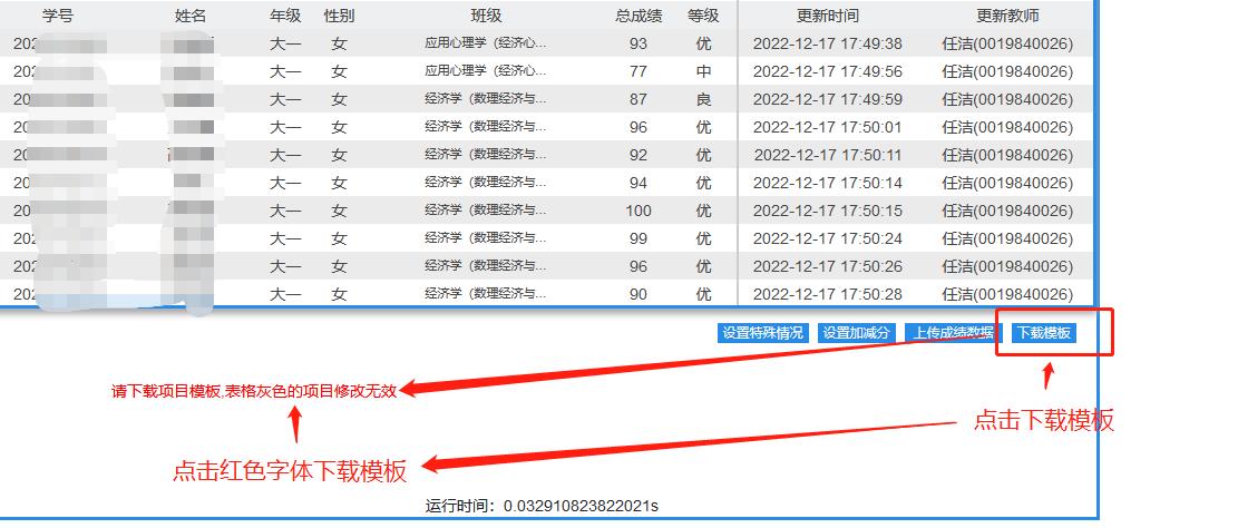体育系统成绩模板下载(下载完成后对正教务系统成绩模板,按照教务系统成绩模板)→导入教务系统