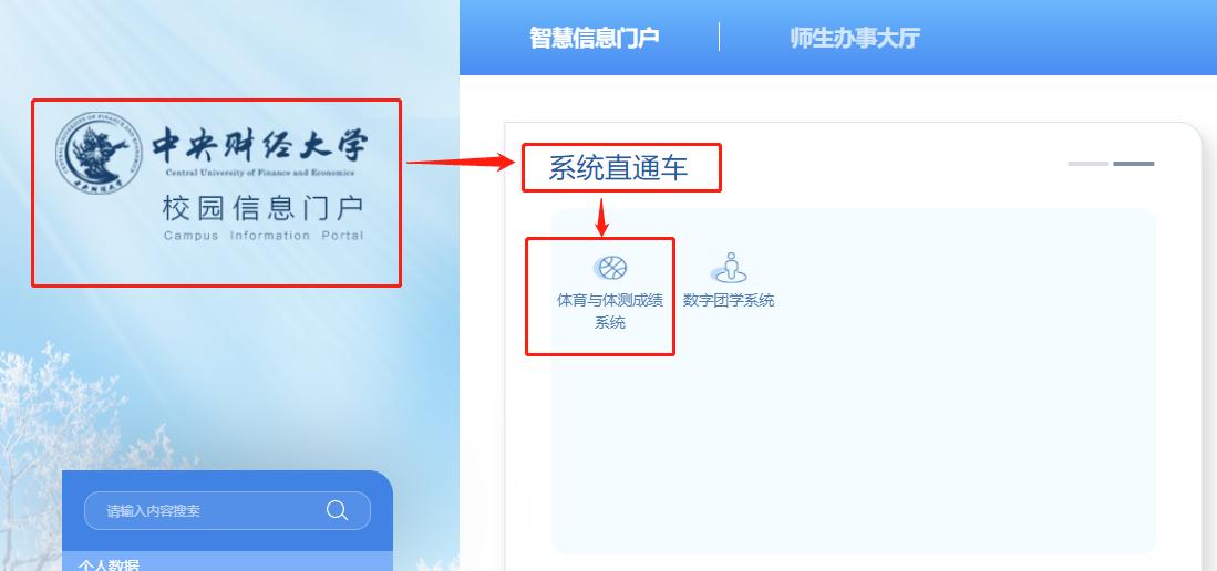 ②:通过太阳集团tyc539macau校园门户-系统直通车-体育与体测成绩系统(见第3条图谱)