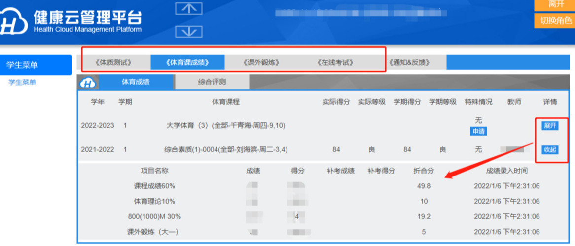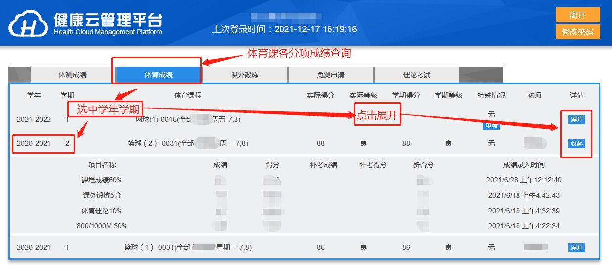 3、体质健康测试成绩/体育课成绩/课外锻炼/在线考试答题 查询