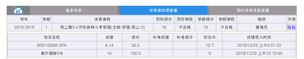 关于2018-2019学年第一学期体育课成绩查询的通知