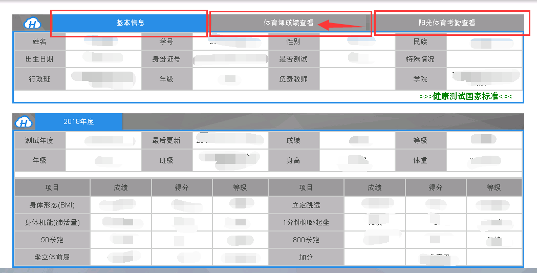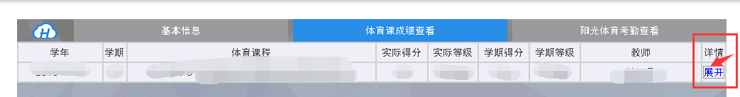 2.登录进去后,如下界面,有三项,点击体育课成绩查看。
