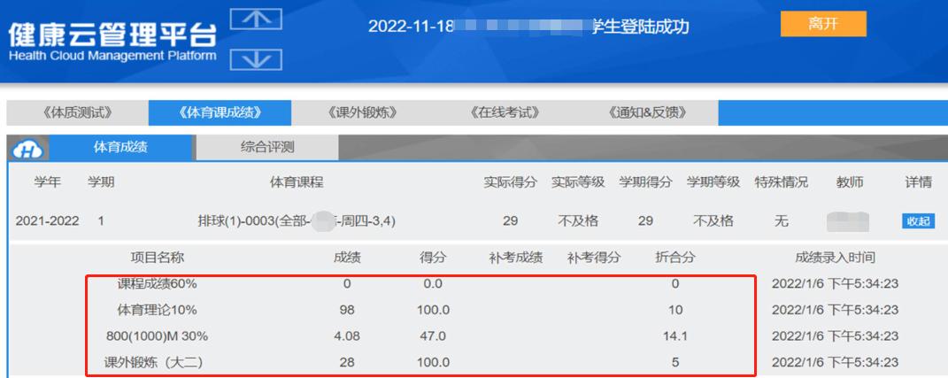 (二)体育课各分项成绩在“体育与体测成绩系统”分项成绩不全,没有总分数,可采取以下方式申请: