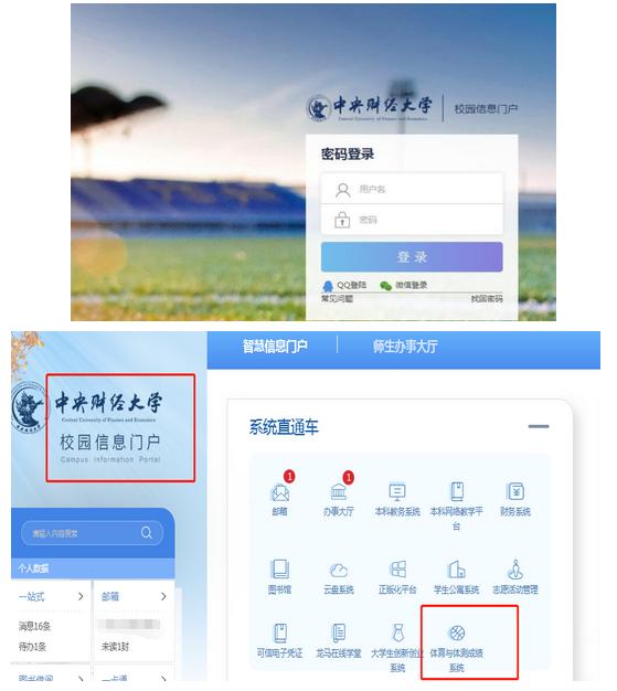 6.考试网址:http://10.13.7.220(务必使用IE、谷歌或火狐浏览器)或通过太阳集团tyc539macau校园门户“体育与体测成绩系统”进入登陆页面,如下图: