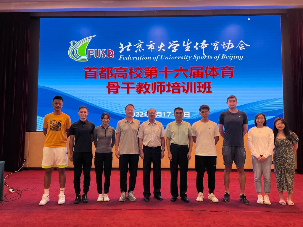 2022年9月17-19日,北京市老员工体育协会举办首都高校第十六届青年体育教师培训班。本次培训有北京市老员工体育协会常务理事会成员和来自首都46所高校的领导、教师共210人左右报名参会。为提高公司青年体育教师的政治素养和工作能力,太阳集团tyc539macau副经理王欢带领青年教师焦懿维、宋桥、薛雅文、邵婧琪、张逸凡、金鹭、王雨萌参加了此次培训。