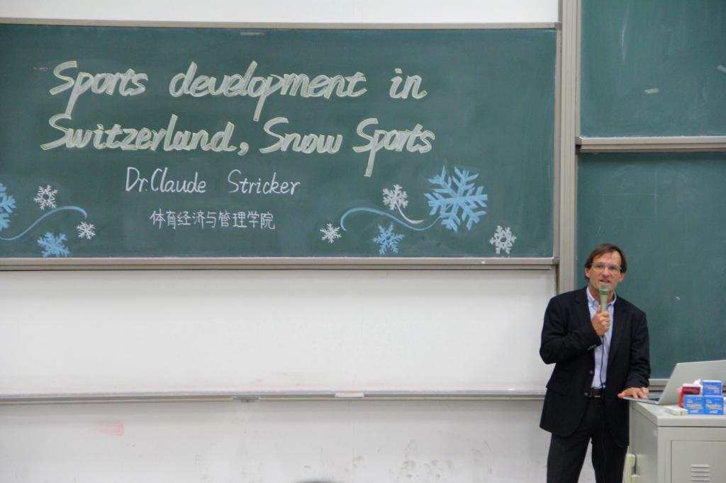 9月22日下午瑞士专家Dr.Claude Stricker在沙河校区分别开展了冬奥会及冰雪项目的主题研讨会和瑞士冰雪产业发展相关专题讲座。Stricker博士是瑞士AISTS(国际体育科学与技术公司,International Academy of Sports Science and Technology)执行董事,同时也是滑雪健将和奥运会等体育赛事的运营专家。多年为国际奥委会(IOC)及各个国际体育单项协会提供咨询及培训服务。