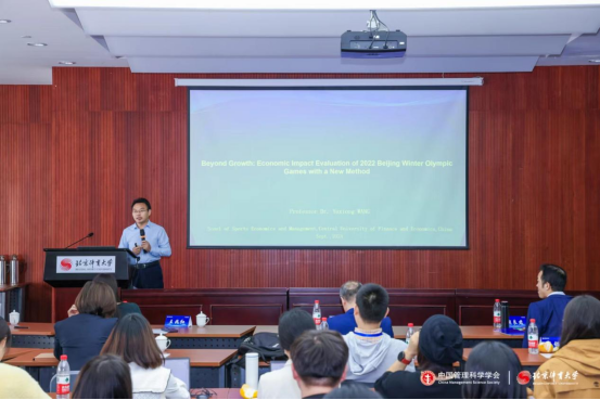 王裕雄教授在主旨报告中以超越增长:北京冬奥会的经济效应研究为题,分享了团队最新研究成果,提出北京冬奥会的筹办恰好是中国经济转型升级的关键时期,北京和河北两个省市作为举办地成功利用了冬奥会这一抓手促进了低碳经济发展,并分享了其量化研究证据。这一研究拓展了对赛事经济社会影响的认知,首次提出了赛事的经济效应对于促进转型升级的价值,主旨报告受到了与会专家和青年学者的一致好评。