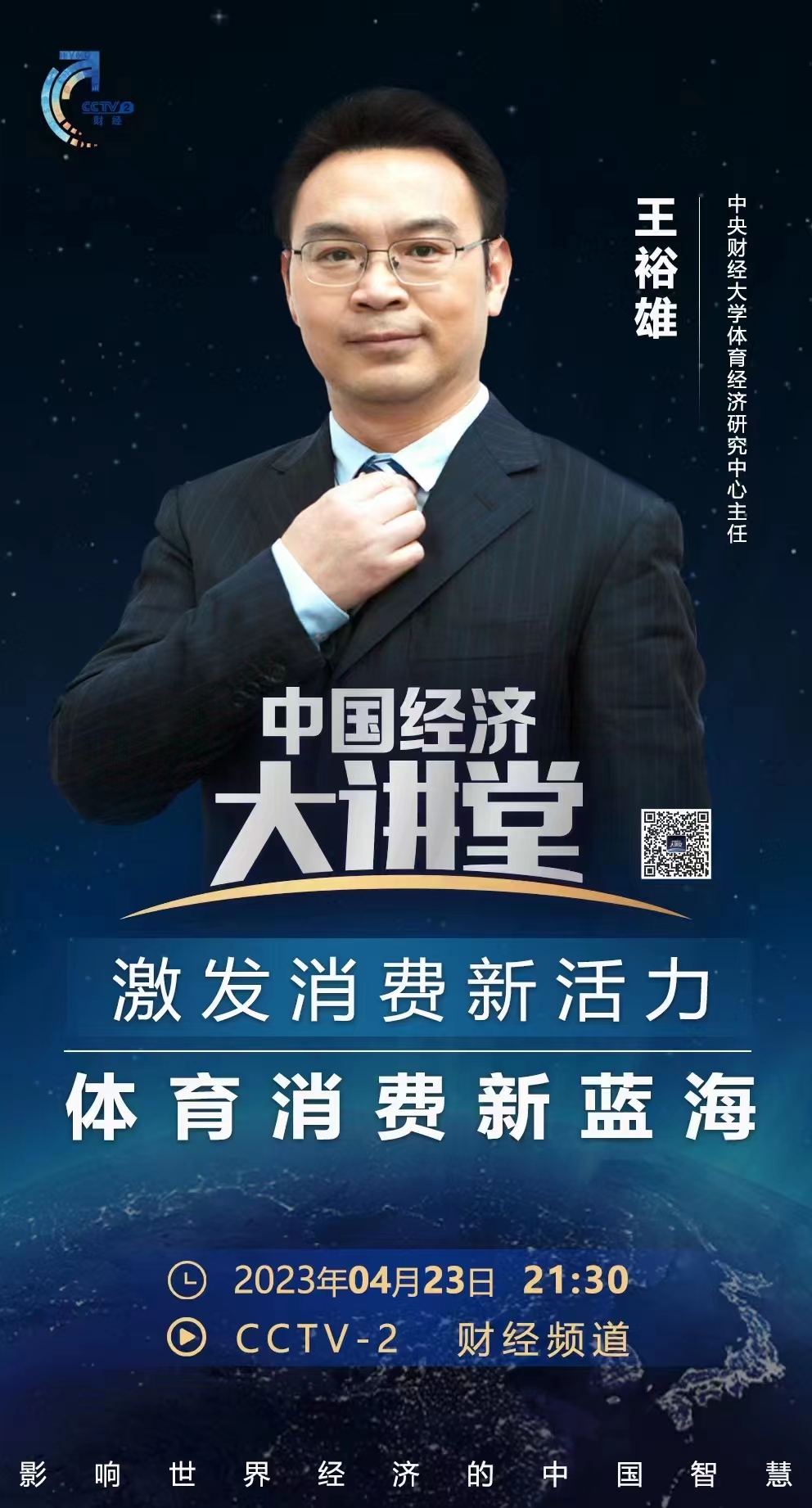 今晚21:30,公司王裕雄教授做客CCTV-2财经频道《中国经济大讲堂》大型专题栏目,为大家解析《体育消费新蓝海》,敬请关注!
