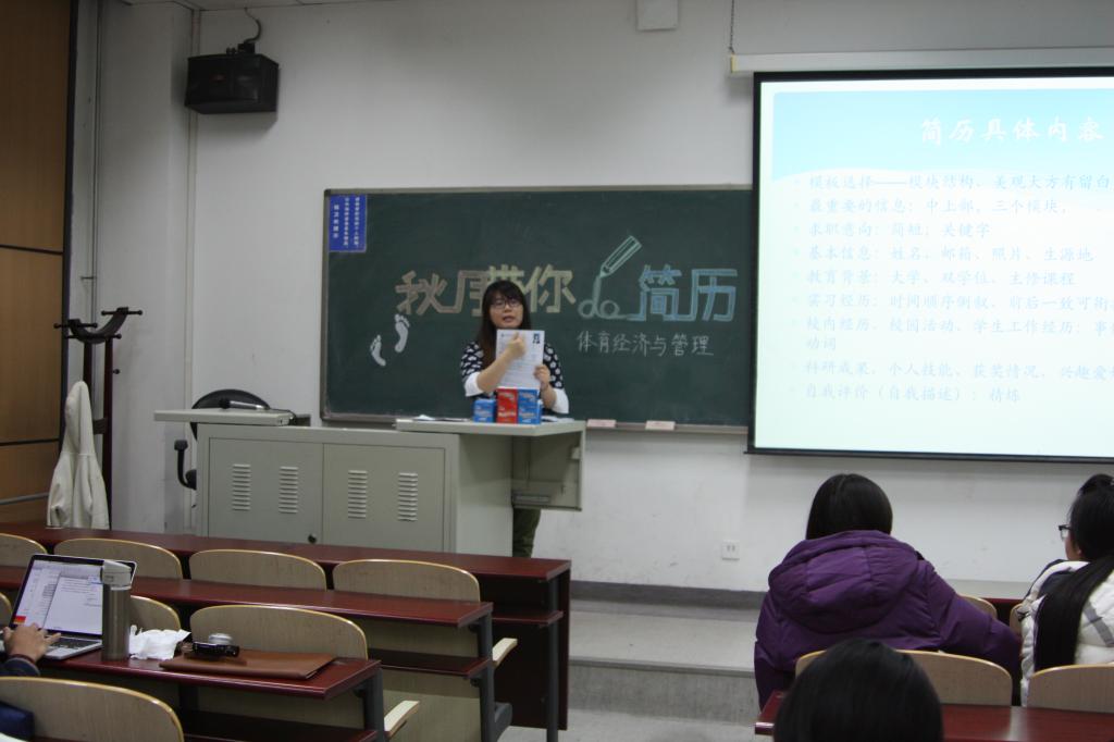 之后,秋月老师对简历的具体内容逐条进行了详细的介绍,讲述了各项内容的重要性、放置位置的选择及文章的整体排版等具体要求。其间,秋月老师以同学们事先上交的简历为例,对制作简历的过程中易出现的问题进行了举例讲解。秋月老师建议同学们多多关注类似公司的就业指导消息这类静态信息,也不要忽视实习这类接受动态信息的机会。