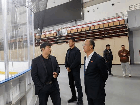 一行人参观了延庆区全民健身中心、北京市冰上项目训练基地,听取了工作人员对场馆运行情况的介绍,实地参观了场地设施和运动员训练。