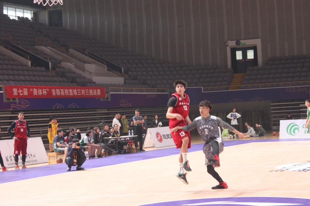 本轮比赛,公司篮球队的对手是实力强劲的北京化工大学。首先进行的是1v1单挑环节,由我方2号球员张宇震对战化工大学13号哈那提·杰恩斯。