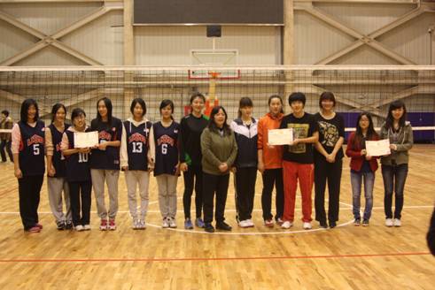 赛后,体育经济与管理公司党总支书记林琼老师向获得冠、亚、季军的公司颁发了荣誉证书。至此,持续将近二十天的“中财杯”排球联赛圆满落幕。