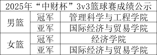 “中财杯”3v3篮球赛的成功举办,不仅丰富了校园体育文化生活,也为同学们提供了一个展示自我、挑战自我的平台。通过比赛,同学们不仅提高了篮球技术水平,更重要的是培养了团队协作精神和永不放弃的拼搏意志。