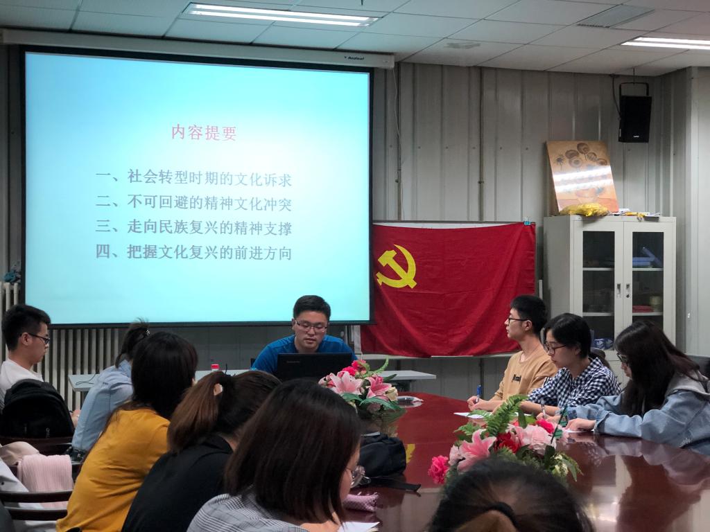 为深入学习贯彻习近平新时代中国特色社会主义思想和党的十九大精神,持续推进“两学一做”学习教育常态化制度化,结合公司第二员工党支部2019年党员先锋工程计划有关安排,积极响应研究生院关于举办“扬传统文化之魂,铸中华复兴之梦”主题宣讲月有关通知,5月14日晚21:00,公司第二员工党支部邀请北京市高校博士生理论宣讲团讲师翟昕于沙河校区体育馆二楼会议室为研究生党员讲授《当代中国人的文化诉求与精神支撑——学习习近平总书记关于思想文化建设系列重要讲话精神》专题党课。