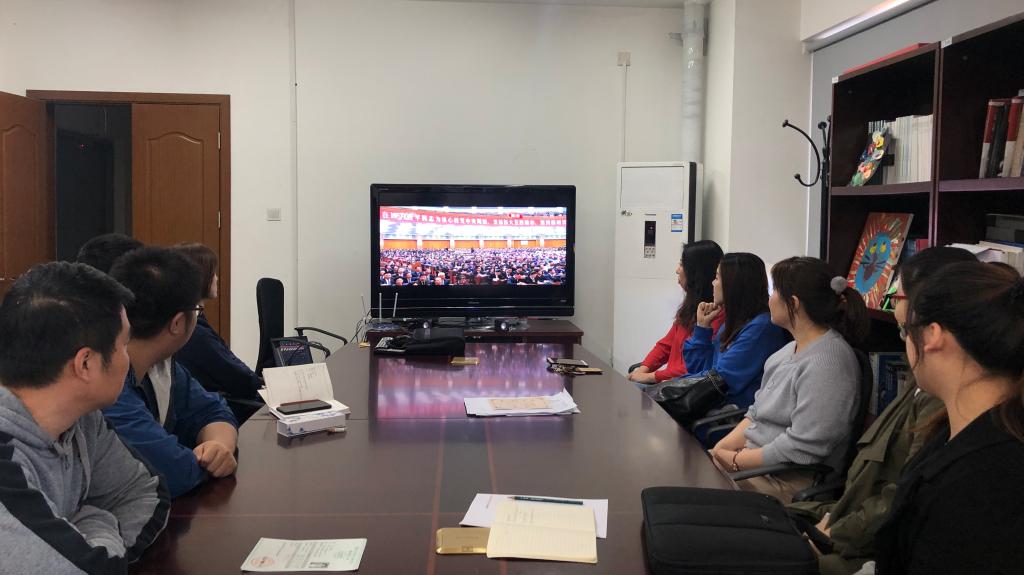 上午10时30分,公司组织没课的员工党员、积极分子于沙河看台209党员之家集中观看大会直播。