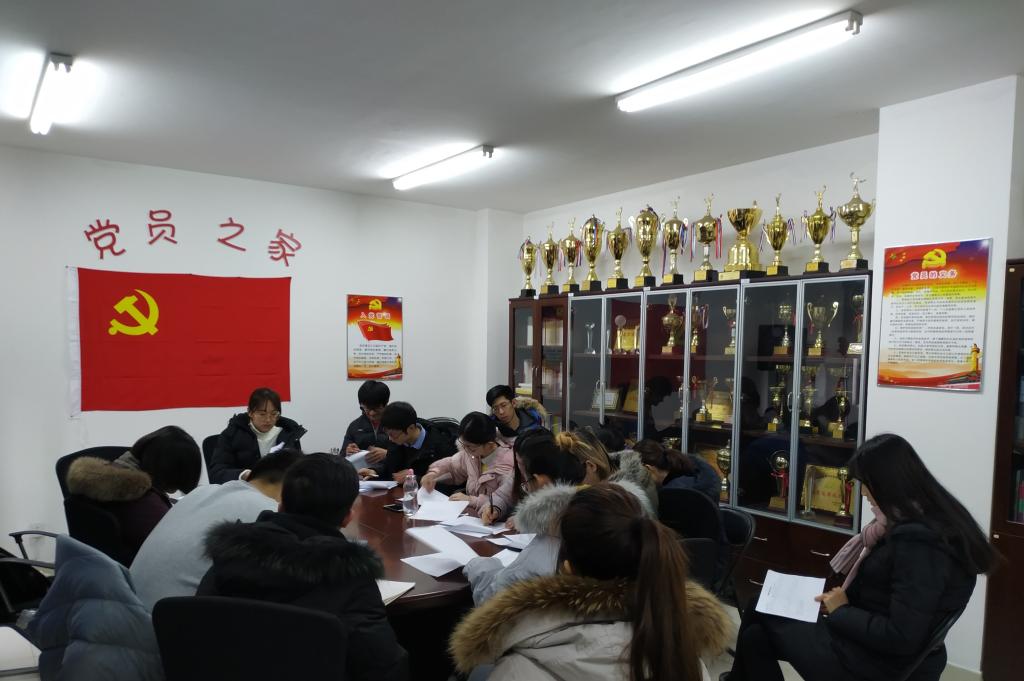 2019年1月7日上午10点,太阳集团tyc539macau第一员工党支部在看台209召开了党支部大会。会议由杜文竹书记主持,第一员工党支部全体成员参加。会议主要有两个流程,一是召开王泽宇同志的转正会议;二是召开民主评议会。
