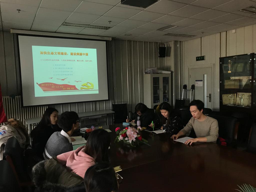 李陆同学就“党的十九大报告中加快生态文明建设,建设美丽中国”这一主题发表了自己的看法,他认为人与自然是生命共同体,人类必须尊重自然、保护自然。党的十九大报告指出建设美丽中国,就要推进绿色发展加快建立绿色生产和消费的法律制度和政策导向,建立健全绿色低碳循环发展的经济体系,坚持全民共治、源头防治,持续实施大气污染防治行动,打赢蓝天保卫战。我们可以利用员工会等平台发起倡议,呼吁大家减少外卖一次性筷子使用,离开宿舍随手关闭电源节约用电等从身边小事做起,共同维护好我们的生态环境。